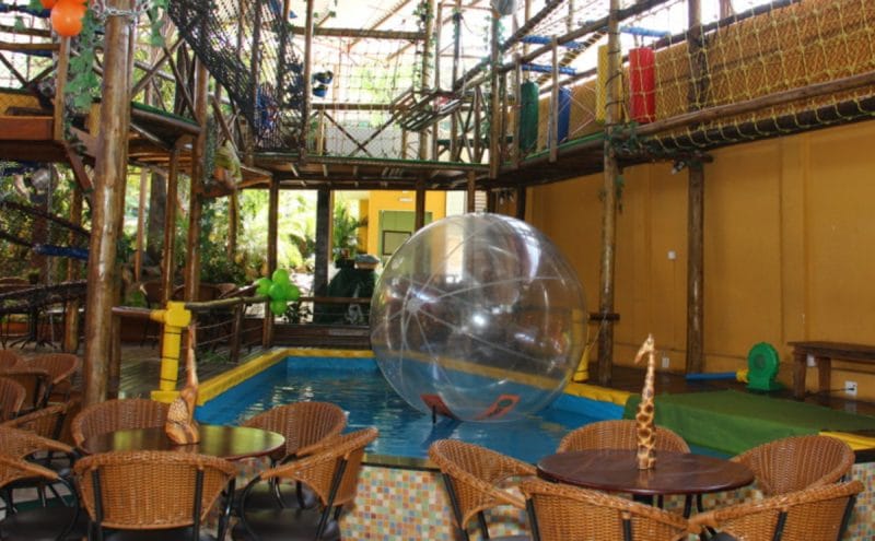 Com temática que inspira o livre brincar, o Algazarra Eco Kids é um buffet para festas infantis sem jogos eletrônicos. O objetivo é promover, apenas, brincadeiras em grupos, com interação contínua, como arvorismo, tirolesa, brinquedão, tobogã, piscina de bolinha, acquabol e outros. Há também um espaço dedicado para os bebês.