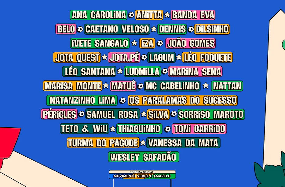 O evento acontece entre junho e julho, no Parque Ibirapuera, com transmissão ao vivo das partidas e shows de mais de 30 artistas da música brasileira.
