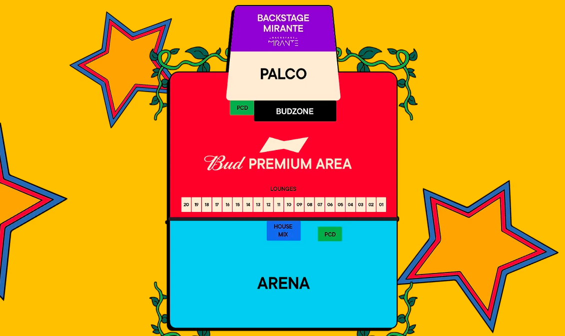 • Bud Premium Area: área próxima ao palco, com acesso à Arena