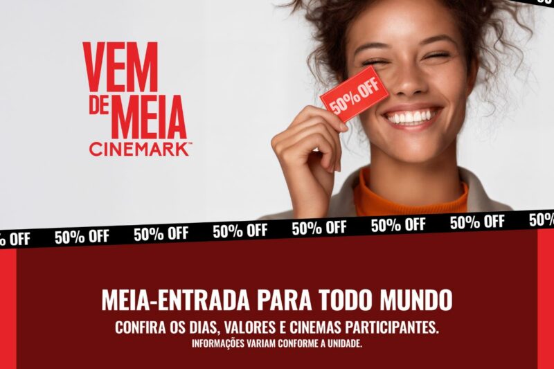 Ir ao cinema com a família ficou mais acessível graças à promoção “Vem de Meia” do Cinemark, que garante 50% de desconto no valor do ingresso inteiro em sessões selecionadas. A ação é válida em algumas salas da rede espalhadas pelo Brasil, proporcionando uma oportunidade para que famílias aproveitem o lazer cinematográfico pagando metade do preço.