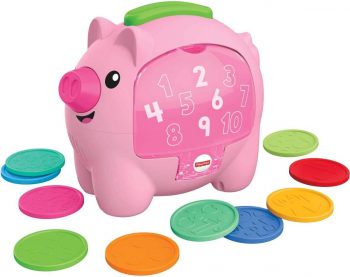 Se o pequeno está iniciando no mundo dos números e tendo os primeiros contatos com o dinheiro, o cofrinho do Porquinho Conta Comigo, da Fisher Price, é ideal. Ele vem com 10 moedas coloridas, cada uma de um “valor”. Ao introduzi-las, o pequeno deve pressionar o nariz do porquinho, que emitirá sons engraçados, vai contar os números e se mexer de um jeito muito engraçado!