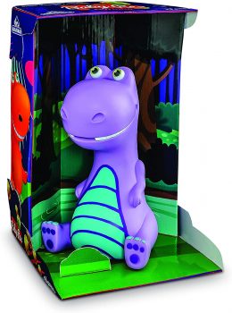 Outro modelo com formato de dinossauro, da Adijomar, também é uma ótima opção. Tem 22cm de altura e saída no fundo para recolher as moedas quando estiver cheio.