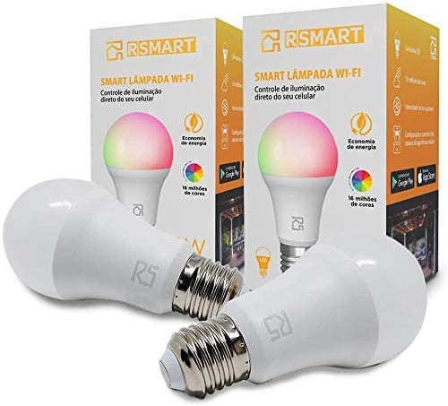 E para quem quiser usar a Alexa em suas diversas possibilidades, dá para começar comprando as lâmpadas que conversam com ele, como esta aqui, a Rsmart Lampada RGBW Wi-Fi.
