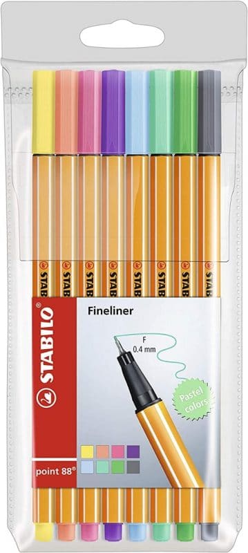 Caso precise de uma caneta com ponta mais fina para fazer caligrafia ou contornos mais delicados, a Stabilo tem disponível um estojo de canetas Hidrográficas Point 88 Tons Pastéis, com oito cores diferentes. A tinta é à base d’água, ou seja, não mancha, tem longa duração e o suporte da ponta é em aço inoxidável.