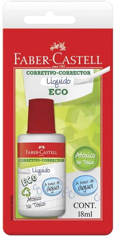 Corretivo? Branquinho? Liquid paper? Você, mais velho ou os baixinhos, com certeza já ouviram ou ainda escutam falar nessas palavras. O produto é super útil na escola para ajudar a apagar palavras escritas à caneta. Para ser retrô, tem que ser um com pincelzinho, como este, da Faber-Castell. É branco e com pegada ecológica, pois sua composição é à base de água.