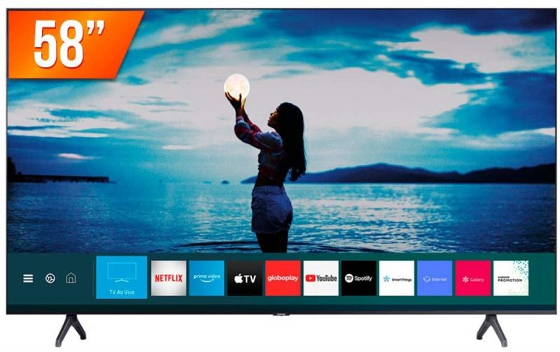 Outra dica é a Smart TV LED, da Samsung, com 50”. Ela vem com tecnologia 4K Ultra HD, considerada umas das melhores do mercado, além de entrada USB e HDMI, Wi-Fi e Bluetooth.