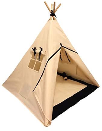 Sabe aqueles modelos de cabanas que mais parecem aquelas ocas? Eis aqui uma barraca semelhante. Só que esta é mais aconchegante, tem janelinhas nas laterais, tapetinho, zíper para fechar a entrada. O charme dela são os suportes que ficam cruzados nas pontas do lado de fora, dando um toque bem original.