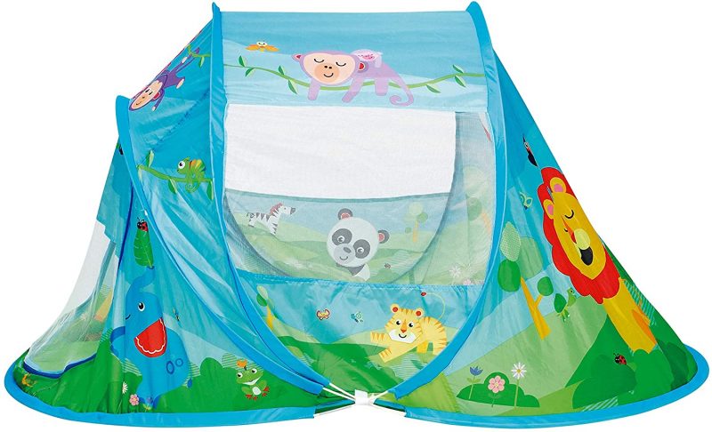 A primeira dica é o modelo Bichinho da Selva, da Fischer Price. Ela é toda estampada com animais que vivem na floresta, como macaquinhos, elefantes, leão, panda e tigre. É portátil e fácil de carregar para qualquer lugar. Tem também telas laterais, que possibilita a visualização externa, a entrada de claridade e bloqueia a entrada de insetos.