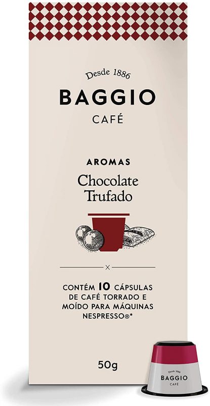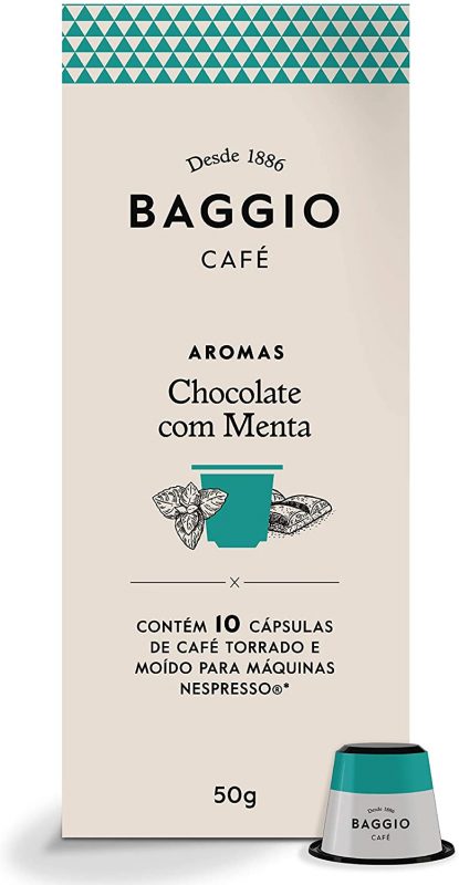 Dos cafés Baggio, tem cápsulas na versão Clássico, Intenso, Extra Intenso e Premium. Ainda tem umas super diferentes, com Aroma de Chocolate com Menta, Caramelo, Chocolate Trufado e Vanilla.