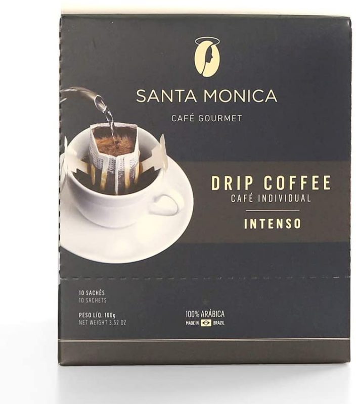 O Café Santa Mônica também está presente na Amazon com várias opções em grão, moído, orgânico, traz também o cappuccino em embalagem de 1kg ou caixa com 2o cápsulas, e a opção Drip Coffee, na qual tudo o que você precisa é uma xícara de água ou leite quente para fazer o café.