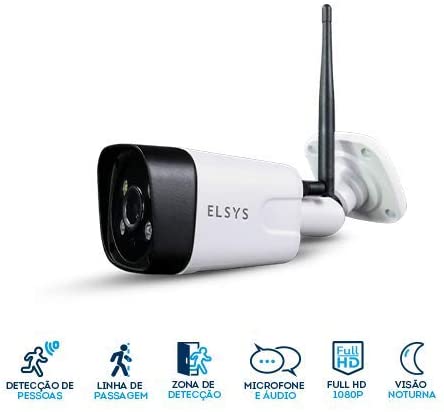 Outro modelo de fácil instalação é o Esc-WB3F, da Elsys, para uso externo. Basta fixar no lugar desejado, habilitar a função Wi-Fi e sincronizar em seu celular. Vem com alarme luminoso, imagem full HD, visão noturna, sistema inteligente com alerta de detecção de pessoas e dispositivo com auto falante para se comunicar com a área externa.