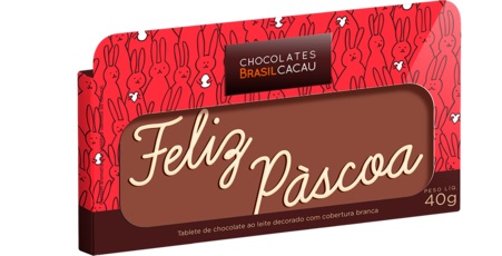 - TABLETE FELIZ PÁSCOA 40 G (R$7,90) – Tablete de chocolate ao leite decorado com cobertura branca;
