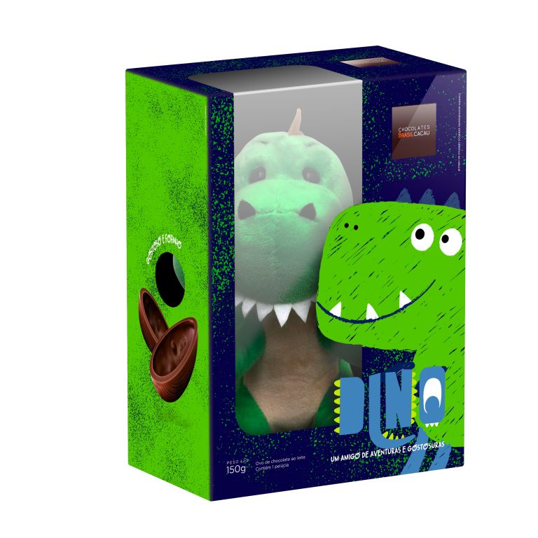- OVO INFANTIL DINOSSAURO 150 G (R$49,90) – Ovo de chocolate ao leite com pelúcia exclusiva de Dinossauro;