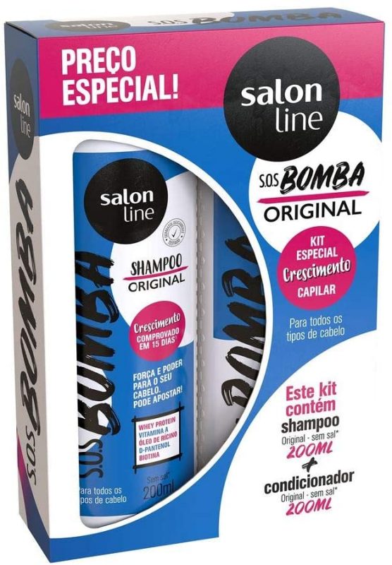 Para quem procura produtos que agem na redução da queda de cabelo, a dica é o kit S.O.S Bomba Original, da Salon Line, com shampoo e condicionador. Os produtos vêm com fórmula testada e comprovada para acabar com a queda dos fios de todos os tipos de cabelo. Os produtos são recomendados para maiores de 12 anos.