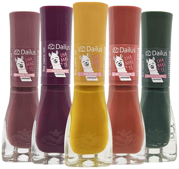Obviamente, a lista de esmaltes não poderia ficar de fora da lista de dicas. O kit de esmalte Dailus, coleção Lhamastê, acompanha 5 cores diferentes: haja paciência, não tô disposta!, puro deboche, sentimental – sou dessas e só vim pela comida.