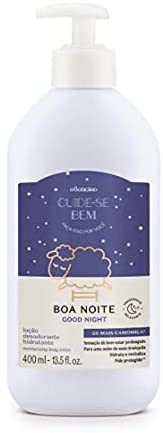 O primeiro item da lista é a loção hidratante Cuide-se Bem, da Boticário. Sua fórmula contém camomila e é indicada para uso antes de dormir, pois além de suas propriedades que estimulam o sono, possui fragrância que auxiliam no relaxamento.