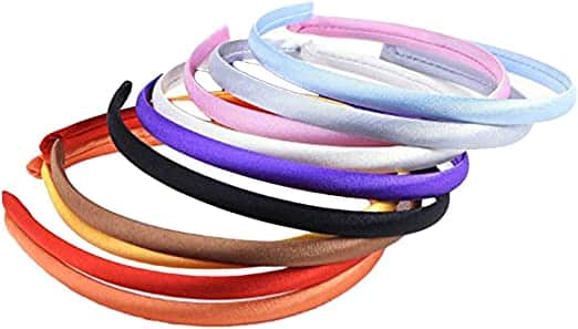 Tiara de cetim, 10 peças 1 cm de largura, linda faixa de cabelo de cetim flexível para mulheres e meninas (cor aleatória)...