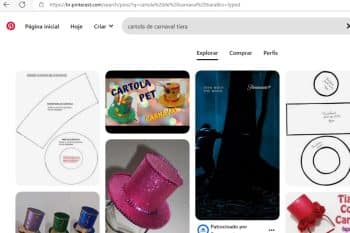 Você pode começar buscando inspirações no Pinterest e pesquisar o molde que você achar mais bonito. Pode pesquisar assim: “cartola de carnaval molde“;