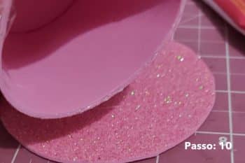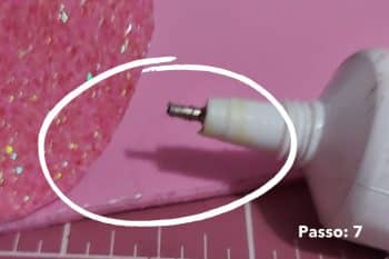 Agora você pode começar a colar o círculo menor na parede da cartola, assim bem pela pontinha mesmo, fixando e colando a próxima parte. Essa cola T-6000 tem um bico especial bem fininho, que ajuda muito nesse processo,