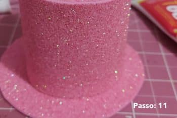 Passe cola na outra parte da Cartola, já com a tiara e cole no outro círculo que já está com a parte de cima da cartola;