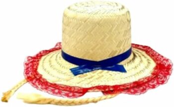 Chapéu Junino Com Tranças Infantil Para Festa Junina Vermelho E Azul