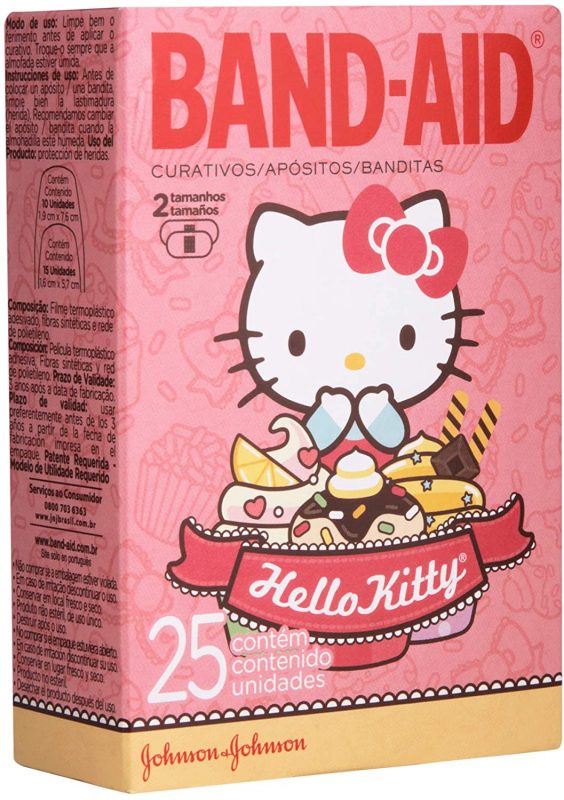 Caiu? Machucou? Ralou? A empresa Band-Aid tem uma caixa com 25 unidades do curativo com estampa exclusiva da Hello Kitty, ideal para proteger a lesão de germes e sujeira. Ele tem micro furos, que permite a respiração do ferimento, mesmo coberto.