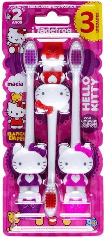 Escova Dental Jadepro Infantil Hello Kitty Com Ventosa Macia C/ 3