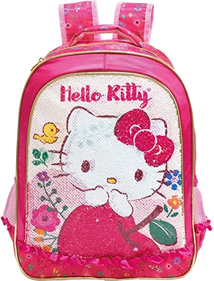 Linha Magic Touch de Hello Kitty a linha com lantejoulas reversíveis. Sua mochila no tamanho 16tem um compartimento muito espaçoso para armazenar os m...