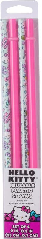 Dê passos ao viver um estilo de vida mais ecológico graças ao conjunto de canudos de plástico reutilizáveis Hello Kitty Kawaii Treats da Silver Buffal...