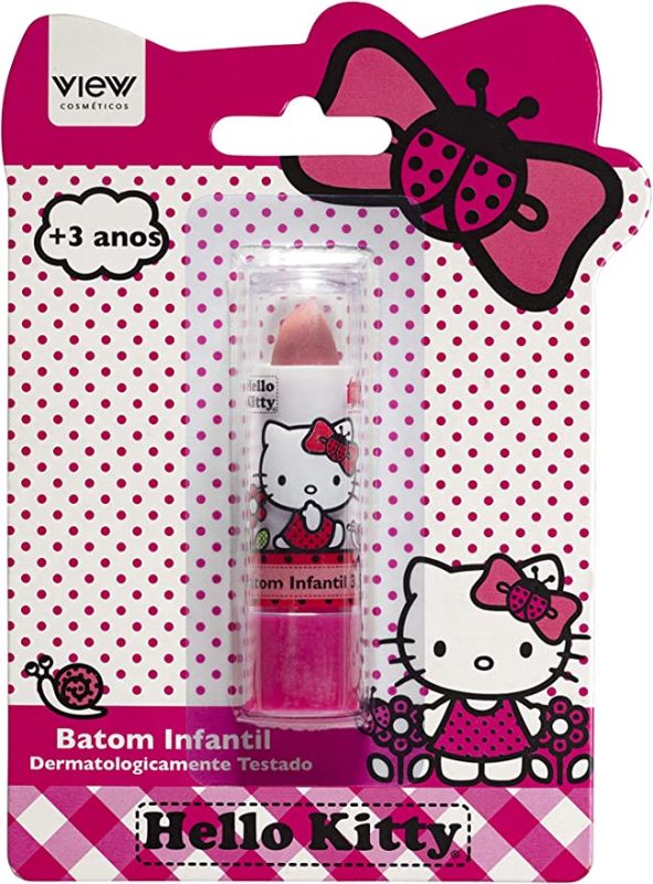 Batom hello kitty infantil na cartela com baixa transferência de cor ,testado dermatológicamente e autorizado pela anvisa para uso em crianças.