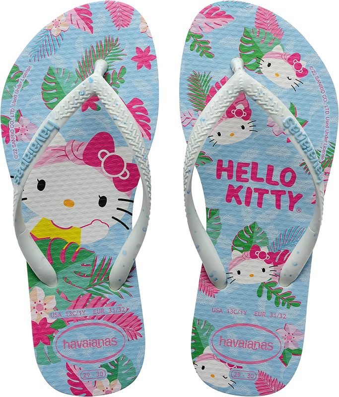 A gatinha Hello Kitty curte a praia com muito charme e estilo na estampa dessa Havaianas Kids Slim.