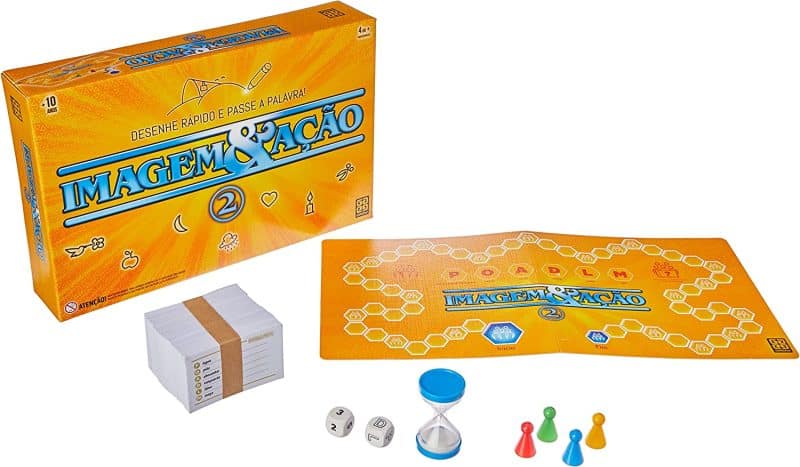 Contém 1 tabuleiro, 1 ampulheta, 198 cartas, 4 peões, 1 dado e 1 folheto de reg...