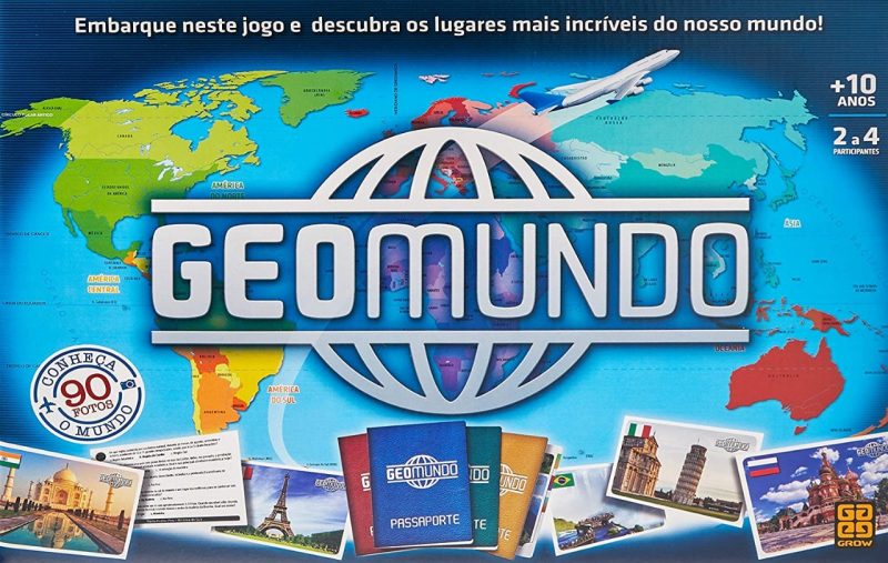 Mais um jogo interessante para a criançada: o Geomundo traz em seu kit 375 perguntas, divididas em cinco categorias diferentes – clima, vegetação e fuso horário; divisão geopolítica e capitais pelo mundo; pontos turísticos; hidrografia e relevo. Trata-se de um excelente “intensivão” de conhecimento para os baixinhos.