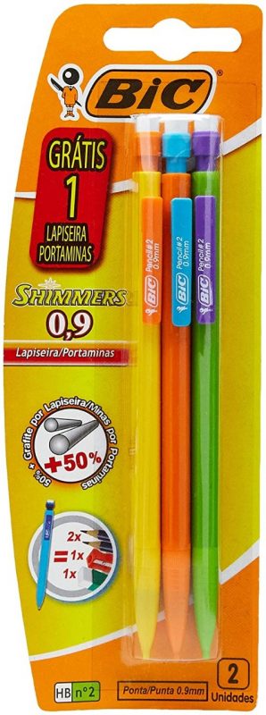 A BIC tem seu kit Shimmers com três lapiseiras nas cores amarela, laranja e verde. Com design exclusivo, tem borracha branca nas extremidades e 50% mais grafite que os demais modelos.