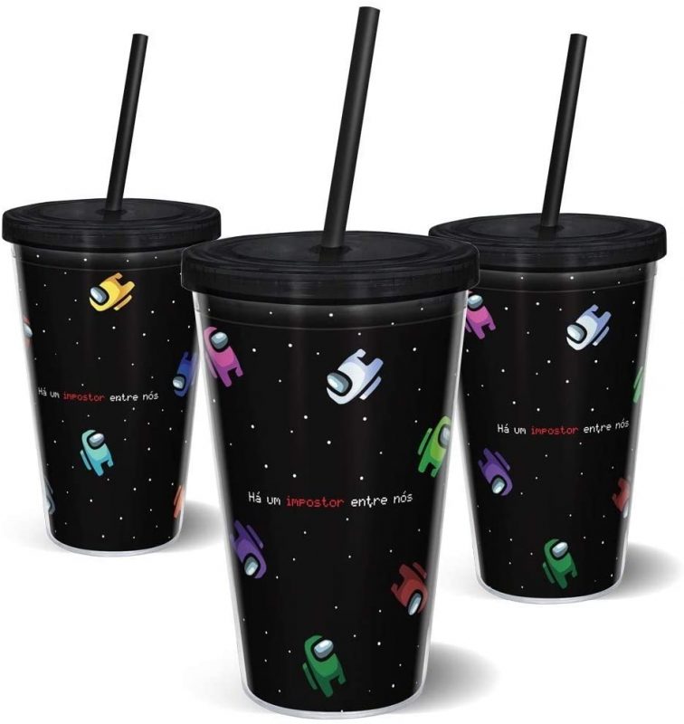 Se o que você precisa é de um copo para se hidratar durante suas partidas de Among Us, a dica é o modelo com canudo, parede dupla para evitar que o líquido queime sua mão ou esquente com o calor de seus dedos. O copo, é claro, vem com desenhos exclusivos dos personagens do jogo!