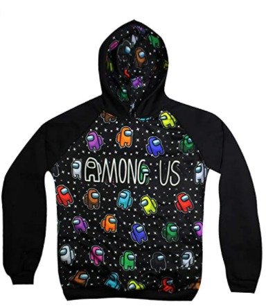 Para encarar o frio com o inverno que se aproxima, a dica é a blusa de moletom infantil Among Us. Vem com capuz e estampa com os pequenos personagens do jogo na parte frontal e touca, além do nome do jogo escrito na altura do peito.