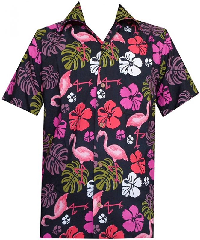 Para os mais estilosos, essa camisa havaiana de Flamingo e flores vai mostrar a personalidade de quem vesti-la na festa. É feita 100% em poliéster, tem mangas curtas , corte lateral e colarinho largo para deixar a pessoa bem confortável.