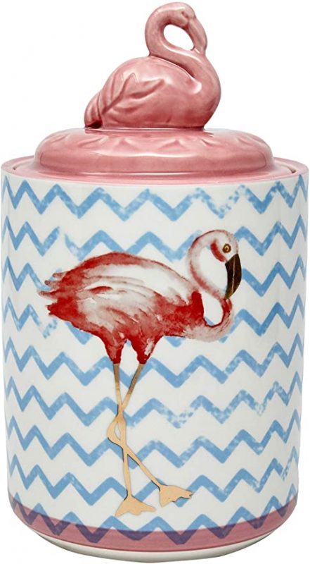 Você também pode substituir aquele seu porta objetos sem graça em cima da cômoda por essa versão feita em cerâmica, toda estilizada com estampa de Flamingo pintado como se fosse à mão. O puxador da tampa também é exclusivo com a reprodução do animal repousado.