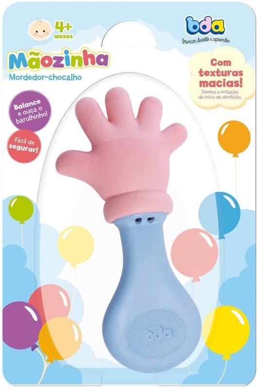 A clássica mãozinha também é um dos mordedores preferidos pelas mães e pais. De pega fácil e material flexível, este mordedor quando balança também solta um barulho. Uma festa só!