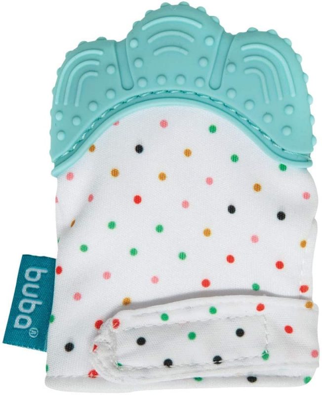 A Buba também lançou a luvinha mordedora que se adapta à mão do bebê. Com velcro, ela encaixa com uma luva mesmo e a ponta é feita de silicone.