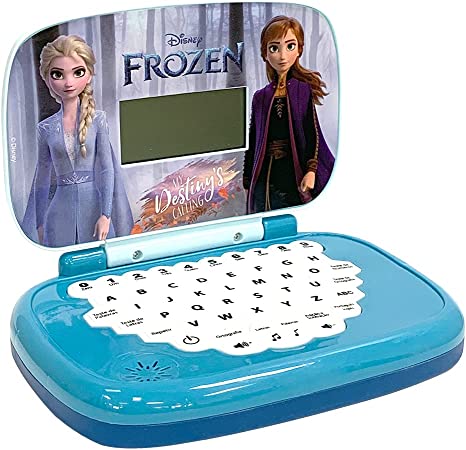 Laptop infantil bilíngue (português/inglês) com diferentes grupos de atividades, sendo eles música, letras, palavras, ortografia, perguntas e resposta...