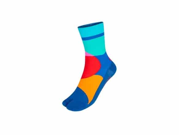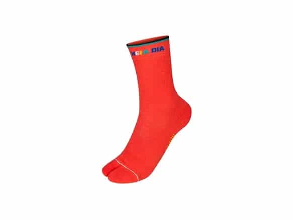 O lançamento traz uma separação entre o polegar e os demais dedos, o que facilita para usar a sandália. A coleção tem opções bem coloridas, para completar, as meias vêm com frases divertidas, como “meia noite, meia dia”; e ainda contam com um solado antiderrapante emborrachado.