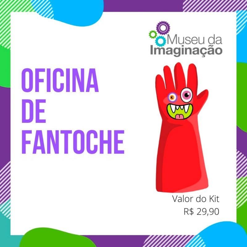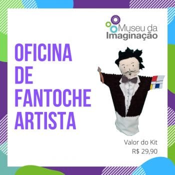 Dar vida aos personagens e desenvolver o imaginário infantil, vivendo outros mundos e novas experiencias — é isso o que as oficinas de Fantoche se propõem. Nela você cria um fantoche e caracteriza ele como um artista, pode ser um Monet, um Van Gogh, um Mondrian ou aquele pintor/artista que você mais gostar. A brincadeira inclui um cenário que você também vai desenvolver por meio de moldes, e as histórias que serão criadas a partir disso. E aí, qual artista personagem você vai escolher, criar e representar? Como será sua voz e o que ela vai nos contar? Material do Kit: