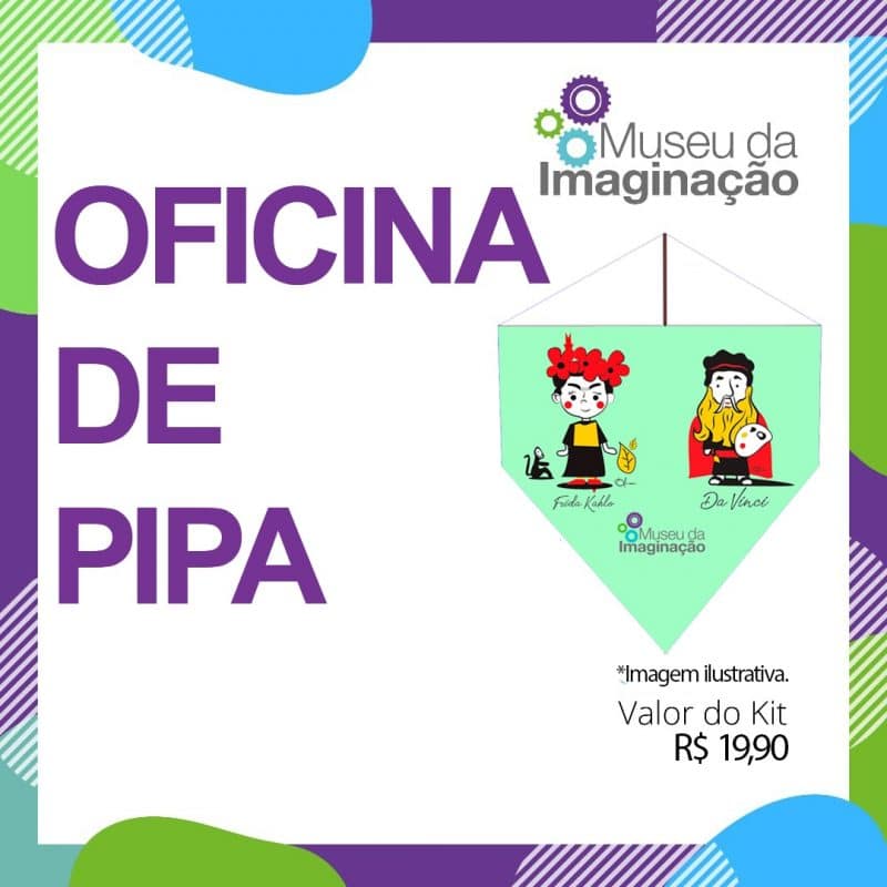 A ideia desta oficina é aproximar a garotada das brincadeiras antigas, possibilitando momentos de aproximação entre a família. As pipas não só nos encantam ganhando altura e voando, mas também durante seu processo de confecção, que é muito gostoso e gratificante. No kit seguem bonecos-artistas para recortar, colar e decorar sua pipa (mas se você preferir eles já vão impressos na folha da montagem da sua pipa, é só você escolher). Material do Kit: