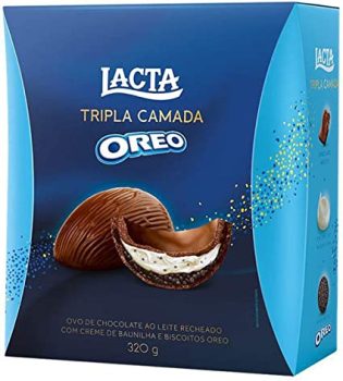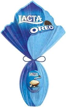 Nessa Páscoa, presenteie quem você ama com os Ovos Lacta! Deliciosa casca de chocolate ao leite Lacta com recheio cremoso e biscoito Oreo. Você vai se deliciar do primeiro ao último pedaço. Celebre e confraternize nessa maravilhosa época do ano e garanta momentos deliciosos para você e sua família. Ingredientes: Recheio sabor chocolate branco (açúcar, gordura vegetal, leite em pó desnatado, óleo vegetal, gordura vegetal hidrogenada, maltodextrina, emulsificante lecitina de soja e aromatizante), açúcar, leite em pó integral, massa de cacau, biscoito (contém trigo), manteiga de cacau, soro de leite em pó, gordura vegetal, gordura de manteiga desidratada, emulsificantes: lecitina de soja e poliglicerol polirricinoleato e aromatizante. ALÉRGICOS: CONTÉM DERIVADOS DE LEITE, TRIGO E SOJA. PODE CONTER AMENDOIM, AVEIA, CENTEIO, CEVADA, AVELÃ, AMÊNDOA, CASTANHA-DE-CAJU E LÁTEX NATURAL. CONTÉM LACTOSE. CONTÉM GLÚTEN. Informação Nutricional:Porção de 25g (1/13 do ovo)Valor Energético 134kcal (6%)Carboidratos 14g (6%) Açúcares 13g (**)Proteínas 1,6g (2%)Gorduras Totais 8,1g (15%) Gorduras Saturadas 4,2g (25%) Gorduras Trans 0g (**)Fibra Alimentar 0,6g (10%)Sódio 40mg (10%)