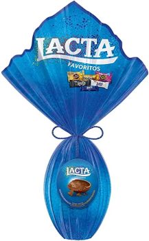 Nessa Páscoa, presenteie quem você ama com os Ovos Lacta! Com sabor incrível e textura cremosa, você vai se deliciar do primeiro ao último pedaço. Acompanha deliciosos bombons sortidos queridinhos da Lacta! Celebre e confraternize nessa maravilhosa época do ano e garanta momentos deliciosos para você e sua família. Ingredientes: Açúcar, leite em pó integral, massa de cacau, manteiga de cacau, soro de leite em pó, gordura vegetal, gordura de manteiga desidratada, emulsificantes: lecitina de soja e poliglicerol polirricinoleato e aromatizante.ALÉRGICOS: CONTÉM DERIVADOS DE LEITE E SOJA. PODE CONTER AMÊNDOA, CEVADA, CASTANHA-DE-CAJU, AVELÃ, AMENDOIM, TRIGO E LÁTEX NATURAL. CONTÉM LACTOSE. CONTÉM GLÚTEN. Informação Nutricional:Porção de 25gValor Energético 133kcal (7%)Carboidratos 14g (5%) Açúcares 14g (**)Proteínas 1,6g (2%)Gorduras Totais 7,7g (14%) Gorduras Saturadas 4,6g (21%) Gorduras Trans 0g (**)Fibra Alimentar 0g (0%)Sódio 28mg (1%).