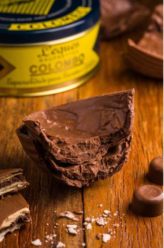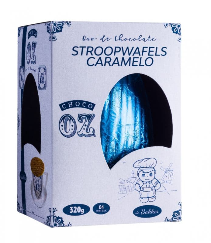 Já o Ovo de Chocolate Ao Leite Com Recheio de Creme de Avelã e Pedaços de Biscoitos Leques Gaufrettes 50g (R$62,90), produzido em parceria com a Confeitaria Colombo, patrimônio,  patrimônio cultural e artístico do Rio de Janeiro por mais de um século. O ovo combina o delicioso chocolate ao leite da Oz e o tradicional creme de avelã com chocolate. Já o Ovo De Chocolate Ao Leite Com Pedaços De Wafle e Stroopwafels De Bakker 350g (R$58,90) traz toda a sofisticação do sabor europeu. A combinação traz toda a trajetória do padeiro holandês  Gerard Elinus Jonker que se instalou em Carambeí, colônia holandesa no Paraná.