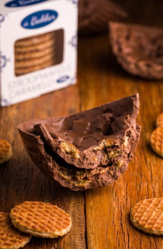 OVO DE CHOCOLATE AO LEITE COM PEDAÇOS DE WAFLE E STROOPWAFELS DE BAKKER