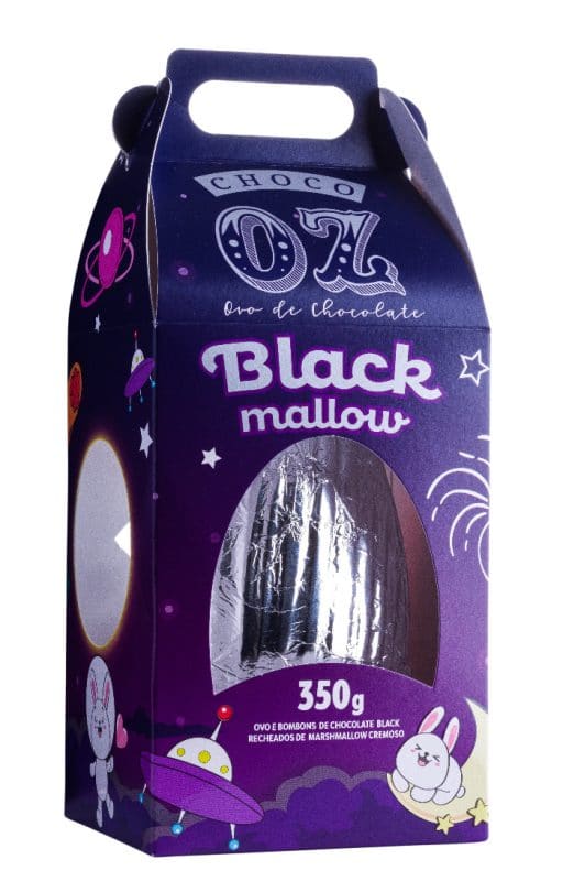 Outra novidade da coleção é o Black Mallow 350g (R$62,90), feito com chocolate especial Choco Oz Black recheado de marshmallow cremoso, inspirado nos coelhinhos que vivem no mundo estelar. Logo na primeira mordida, já dá para sentir o sabor de brownie com a potência do 65% de cacau meio amargo. No recheio, biscoitos crocantes que lembram o famoso Oreo.
