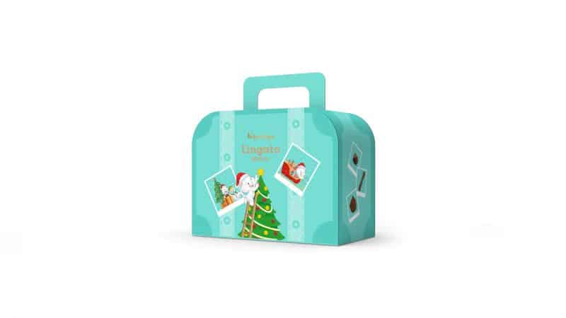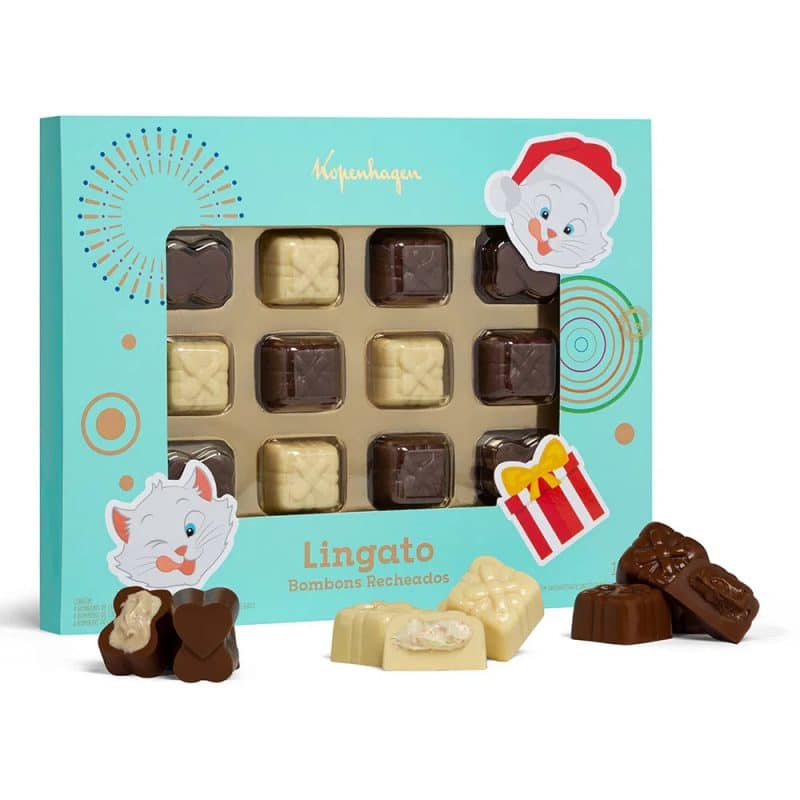 A primeira é a Maleta Lingato (R$ 79,90), que vem com uma pipoca sabor caramelo coberrta de chocolate ao leite para os pequenos saborearem, além de um chocolate ao leite Língua de Gato e mais cinco tabletes dentro da embalagem decorativa.
